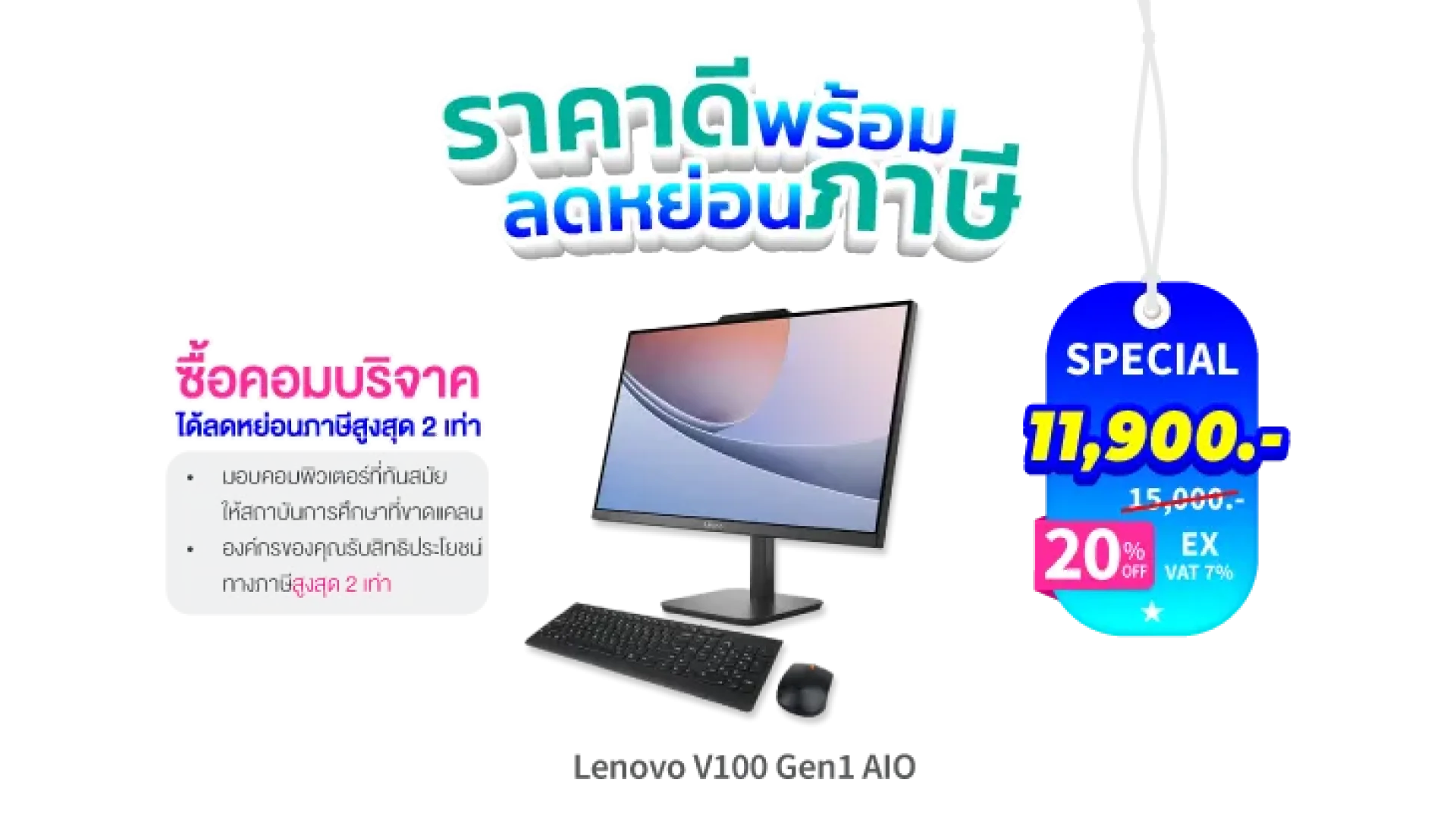 ราคาดีพร้อมลดหย่อนภาษี Lenovo V100 Gen 1 AIO