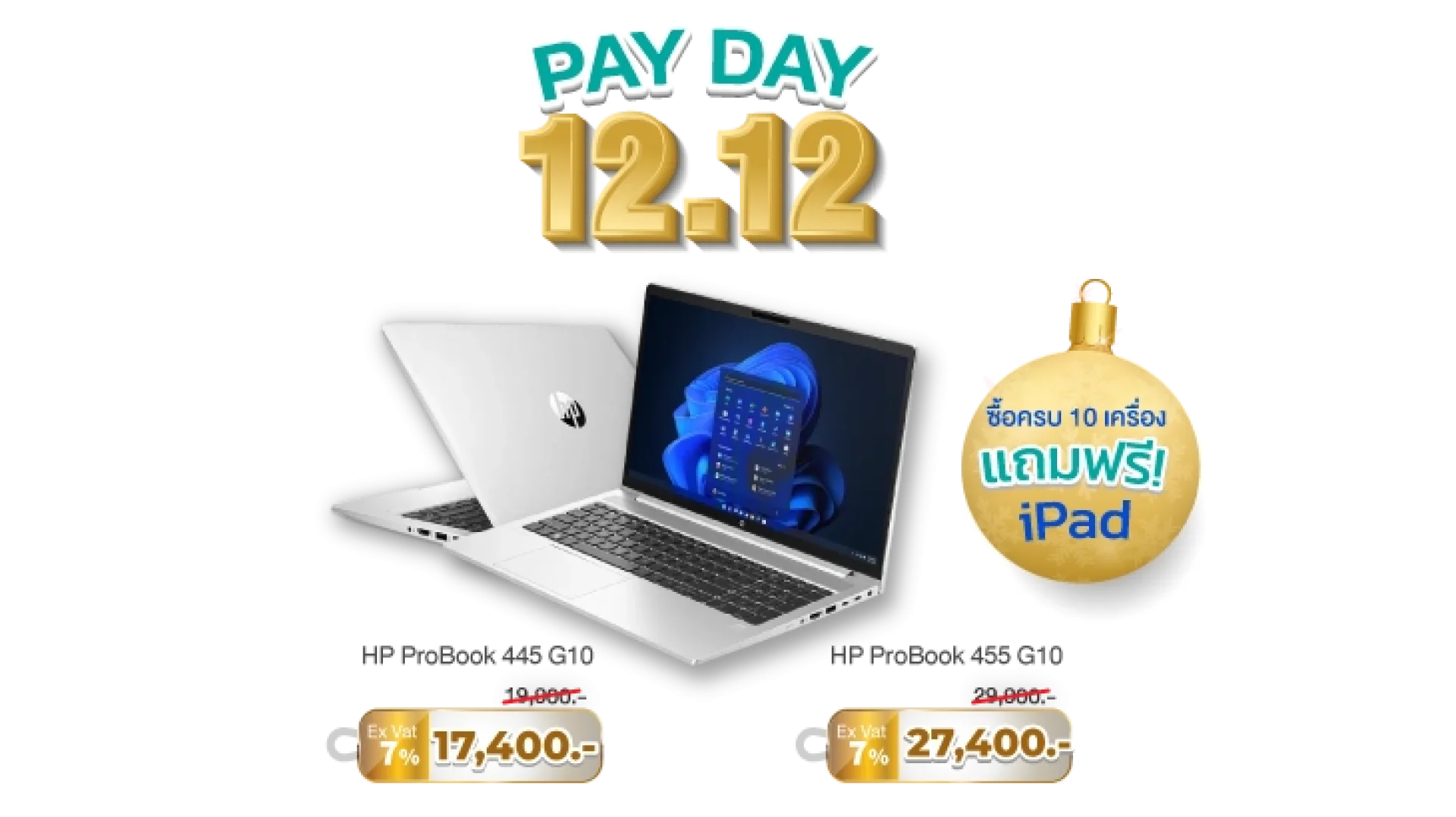 12.12 PAY DAY HP ProBook ซื้อ 10 เครื่อง ฟรี! iPad